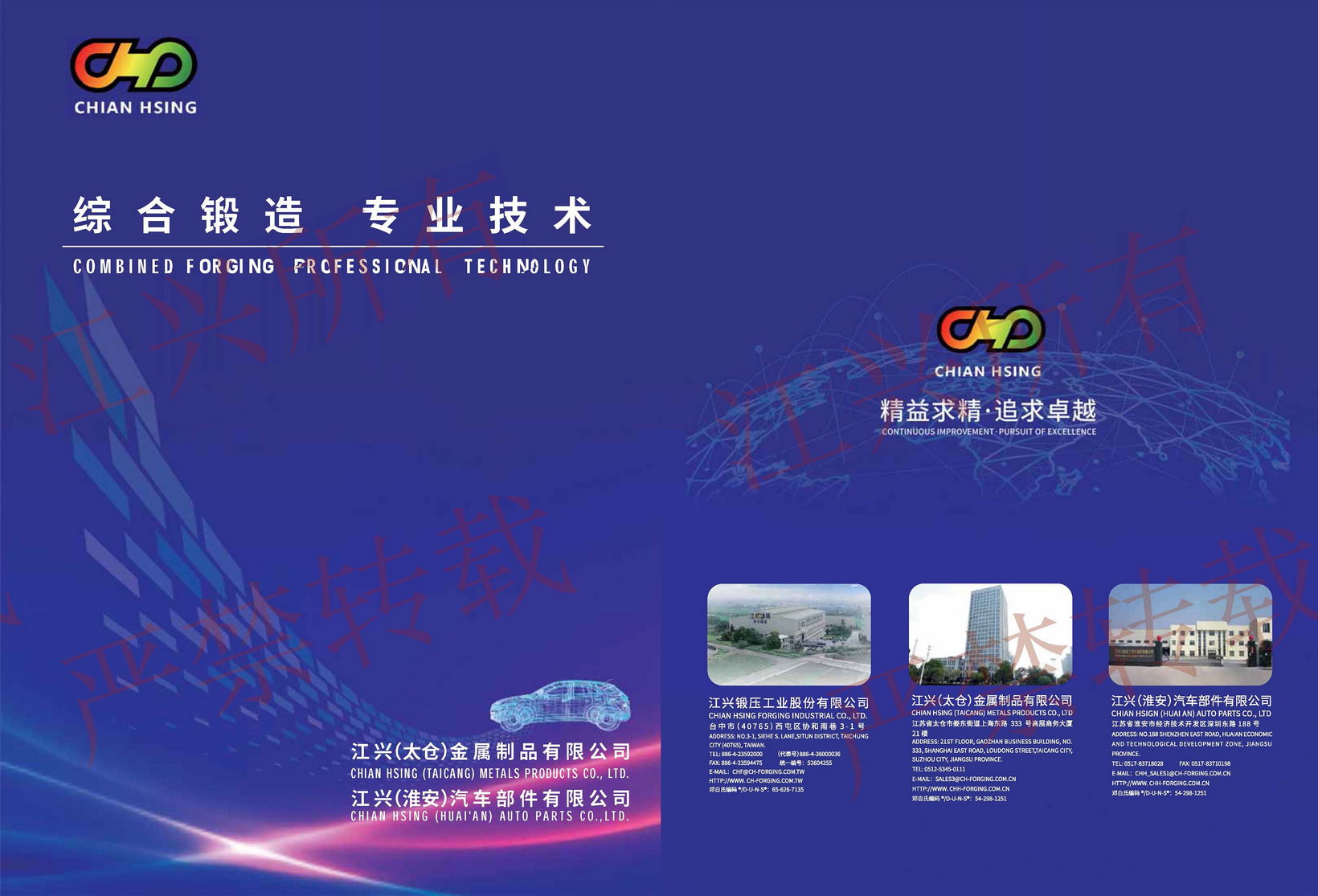江興鍛壓工業(yè)股份有限公司自西元1971年創(chuàng)立以來(lái),秉持著「顧客滿意、同仁樂(lè)意、經(jīng)營(yíng)得意、永續(xù)經(jīng)營(yíng)」之經(jīng)營(yíng)理念,不斷開(kāi)發(fā)綜合鍛造之技術(shù),使本公司所生產(chǎn)的鍛品更優(yōu)良、更精密、更能減少切削加工,使鍛品更臻于理想。于1997年在江蘇省太倉(cāng)市設(shè)立江興(太倉(cāng))金屬制品有限公司,以及2012年設(shè)立江興(淮安)汽車部件有限公司,延續(xù)臺(tái)灣總部的經(jīng)營(yíng)理念和專業(yè)技能,持續(xù)在國(guó)內(nèi)發(fā)展并精進(jìn)冷溫?zé)峋C合鍛造技術(shù)。