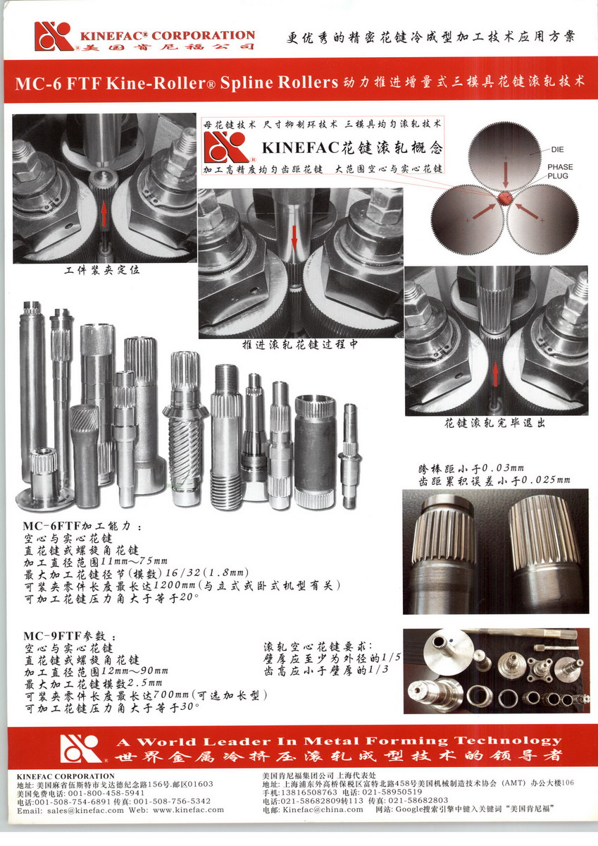 美國肯尼福公司—Kinefa’Corporation,成立于1962年,其冷壓成型技術可以追溯到1930年,位于工業(yè)科技發(fā)達的美國麻省第二大城市伍斯特市,創(chuàng)始人現(xiàn)任總裁霍華德(Howard A.Greis)先生代表美國肯尼福公司起草了相關冷成型專業(yè)的美國國家技術標準,并編著了美國機械加工工藝技術手冊中的滾絲工藝手冊,擁有眾多冷成型技術專利,并奠定了美國肯尼福公司作為北美冷擠壓滾軋成型加工設備制造行業(yè)的龍頭企業(yè)地位。