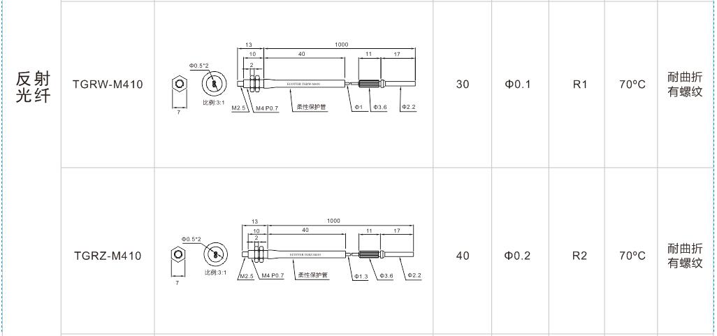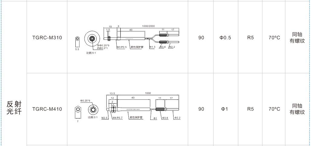 有螺紋無凸管系列光纖