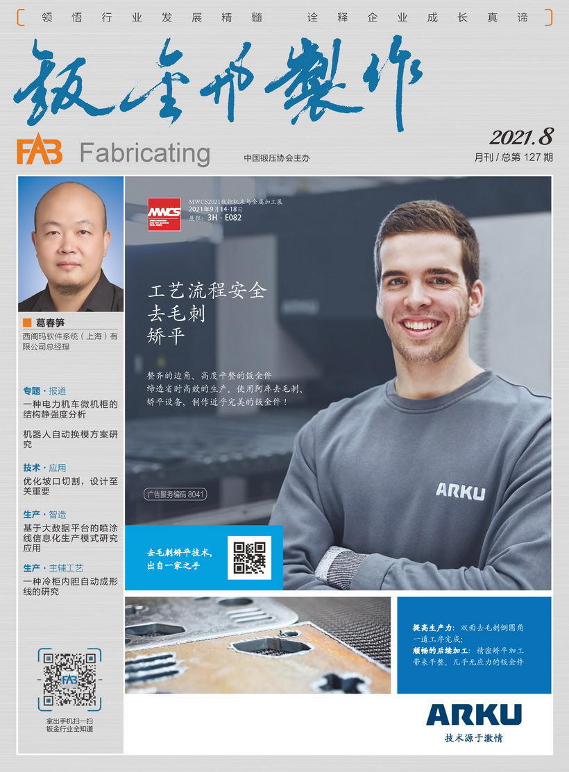 《鈑金與制作》雜志是中國鍛壓協(xié)會(huì)主辦的目前國內(nèi)惟一一本面向鈑金制作、管型線材加工行業(yè)的綜合性高端雜志。憑借中國鍛壓協(xié)會(huì)多年服務(wù)鈑金和管型線材行業(yè)的優(yōu)勢(shì),努力搭建供應(yīng)商與用戶企業(yè)間的信息平臺(tái),做好政府、高校、科研院所及企業(yè)間溝通的橋梁。