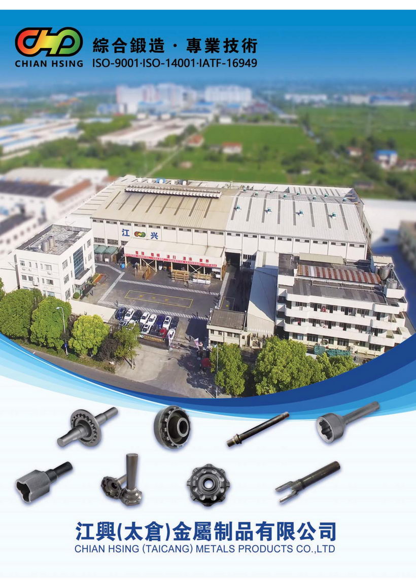 江興鍛壓工業(yè)股份有限公司自西元1971年創(chuàng)立以來,秉持著「顧客滿意、同仁樂意、經(jīng)營得意、永續(xù)經(jīng)營」之經(jīng)營理念,不斷開發(fā)綜合鍛造之技術(shù),使本公司所生產(chǎn)的鍛品更優(yōu)良、更精密、更能減少切削加工,使鍛品更臻于理想。于1997年在江蘇省太倉市設(shè)立江興(太倉)金屬制品有限公司,以及2012年設(shè)立江興(淮安)汽車部件有限公司,延續(xù)臺(tái)灣總部的經(jīng)營理念和專業(yè)技能,持續(xù)在國內(nèi)發(fā)展并精進(jìn)冷溫?zé)峋C合鍛造技術(shù)。