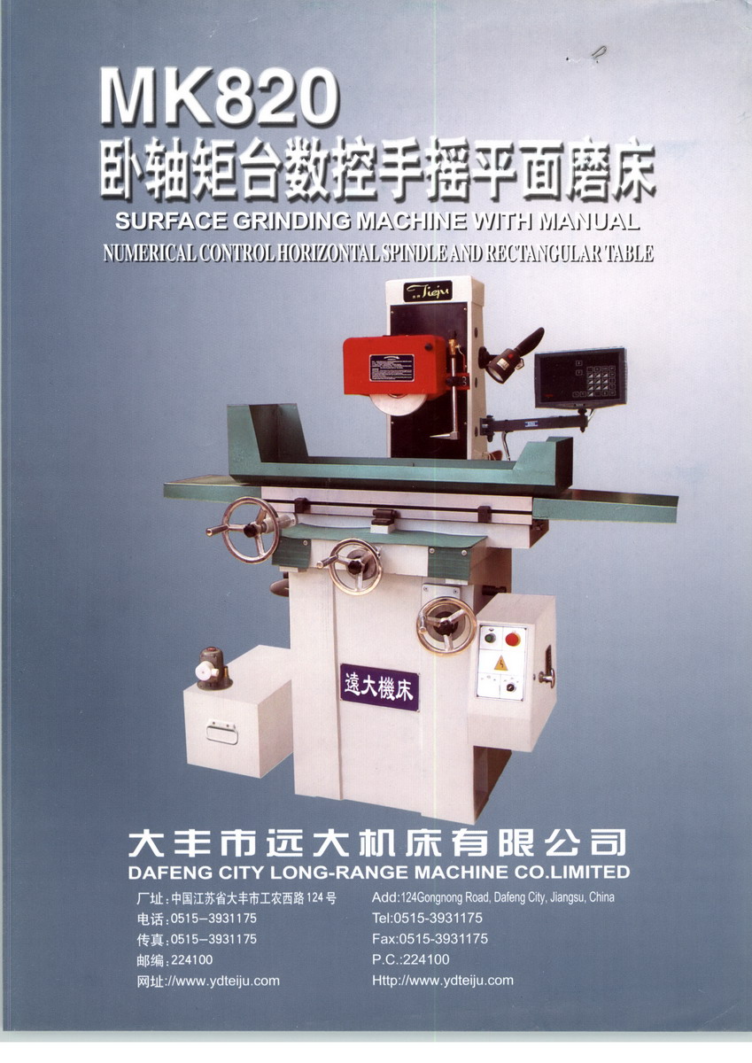 大豐市遠大機床有限公司,是專業(yè)生產(chǎn)“鐵駒”牌手動平面磨床的企業(yè)。公司具有出口產(chǎn)品質(zhì)量許可證,通過ISO9001-2000國際質(zhì)量體系認證,產(chǎn)品通過了國家機床質(zhì)量監(jiān)督檢驗中心的檢查驗收,是鹽城市“重合同、守信用”企業(yè)。公司有一批多年從事平面磨床設(shè)計、制造、檢測售后服務(wù)的專業(yè)技術(shù)人員,技術(shù)力量雄厚、生產(chǎn)工藝先進、檢測裝備精良,產(chǎn)品出口美國“MCLMA”等3家公司及歐美幾十個國家,暢銷國內(nèi)二十多個省市。 “鐵駒”牌手動平面磨床,是本公司在結(jié)合臺灣磨床制造技術(shù)與經(jīng)驗的基礎(chǔ)上,研發(fā)設(shè)計的專業(yè)榮譽產(chǎn)品,從材質(zhì)研究、整機結(jié)構(gòu)、機械原理、精度調(diào)整等方面,我們都在不斷的研發(fā)改進中,做到一叢不茍、精益求精。
