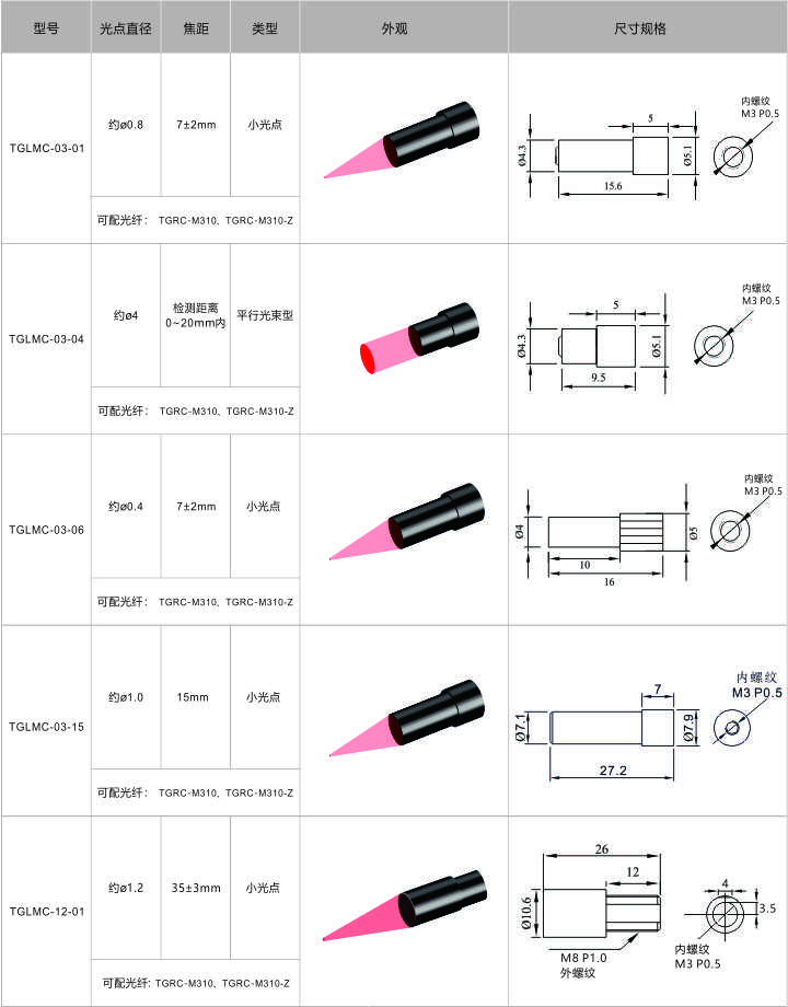 還有對(duì)射光纖用的TGLMC-04-02、和M6光纖用的TGLMC-12-03等