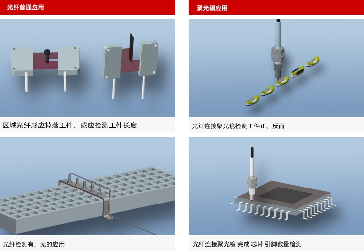 光纖放大器可以作為一種類型為對(duì)射或漫反射的傳感器。而光纖可以很容易的集成在空間受限的地方。光纖放大器和光纖的傳感組合,可以應(yīng)對(duì)復(fù)雜、多變的工業(yè)自動(dòng)化系統(tǒng)中的感應(yīng)需求。