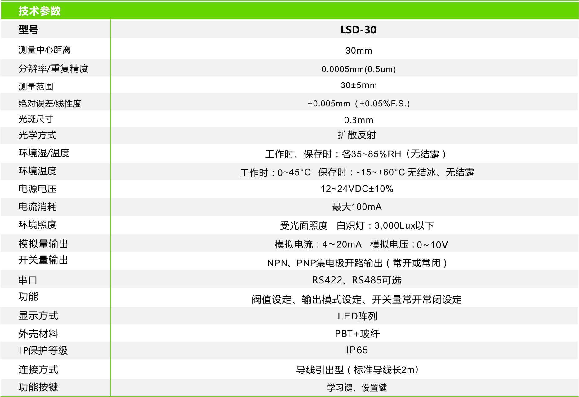 首頁 > 產(chǎn)品中心 >>傳 感 器 >> 激光位移傳感器 >> 激光位移傳感器 LSD-30