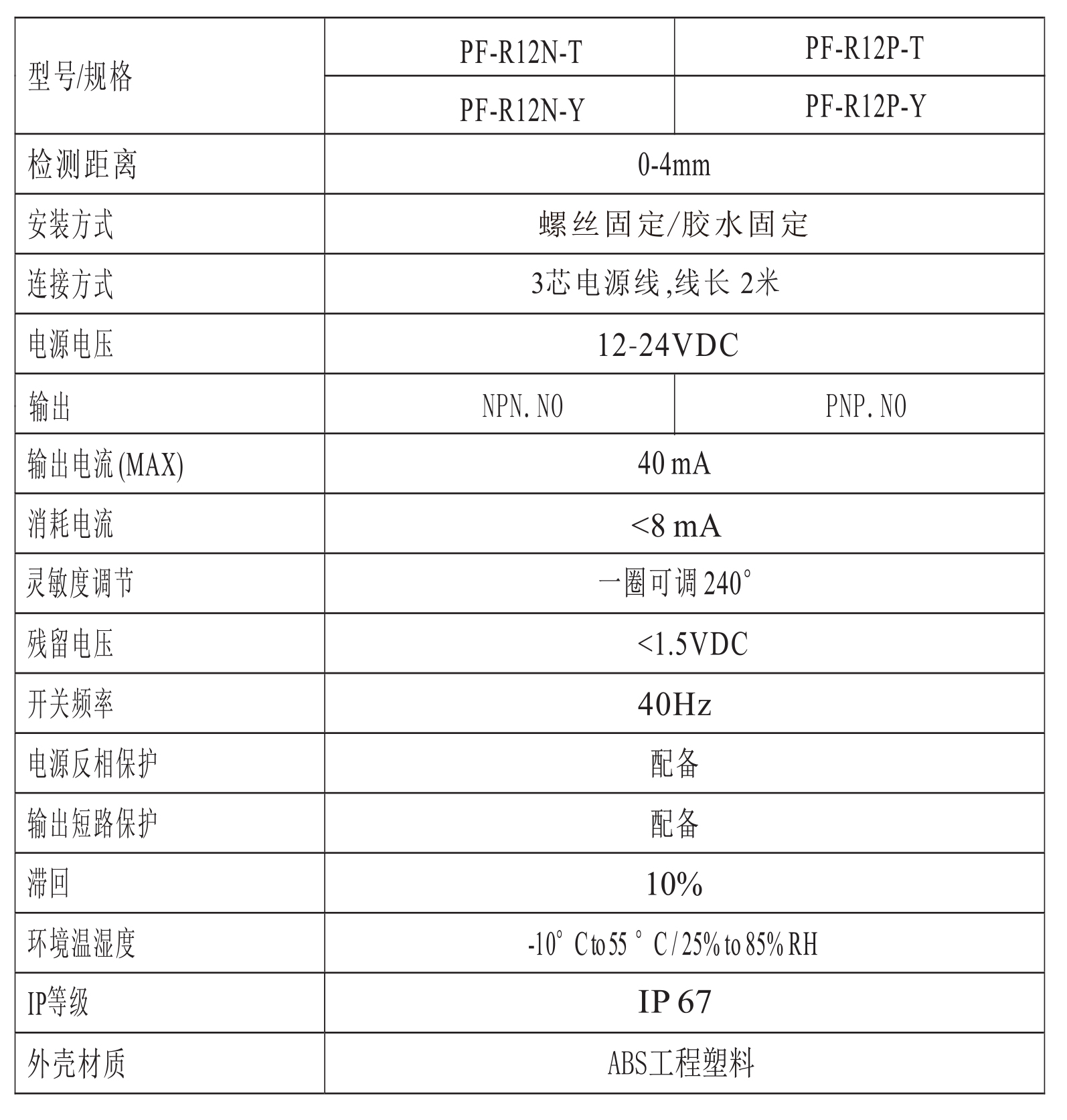 方型電容式傳感器PF-R12-T/Y